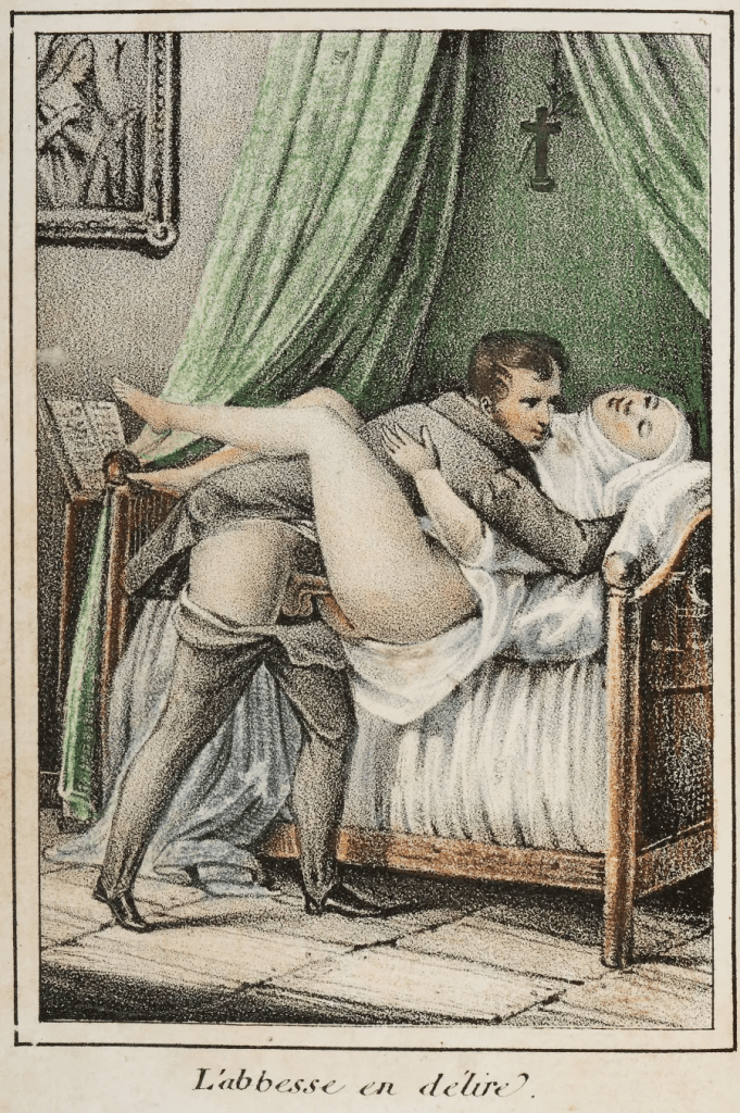 On s’imagine bien que la matinée ne se passe pas sans que je me rende chez ma bonne. On m’introduit au petit jour. La fidèle Macao me donne des conseils pour plaire à madame, et je lui sacrifie une parcelle de mon or pour en gagner un monceau. Ma vieille me reçoit avec toutes les grâces possibles… mais, ô surprise ! …avez−vous jamais vu une pomme qu’on place sur le récipient d’une machine pneumatique ? Chaque coup de piston semble lui rendre sa fraîcheur, sa peau ridée devient lisse, et les rayons du jour qui s’y réfléchissent lui donnent un vermeil qu’elle avait perdu… voilà l’état de ma vieille ; ses yeux sont dérougis, elle semble soufflée, et si elle avait des cheveux, de la gorge et des dents, elle serait foutable… ma main batifole, un sourire enfantin la ranime… quand elle me chasse très sérieusement pour mettre ordre à ses affaires.