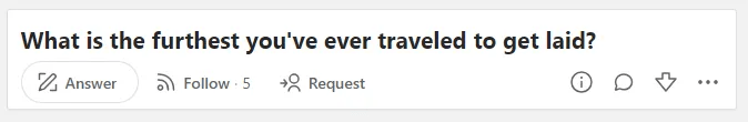 Les gens qui ont parcouru les plus grandes distances l’ont fait, sans surprise, pour se rendre dans un autre continent pour forniquer avec une personne qu’iels ont éventuellement mariée. La palme du commentaire le plus atroce est toutefois décernée à ce post: