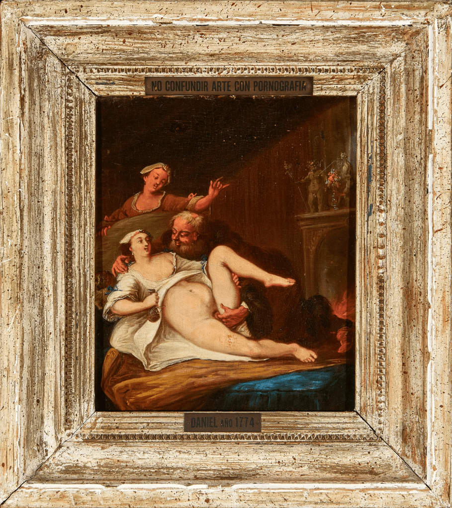 Sur le cadre de cette peinture vénitienne anonyme du XVIIe siècle (signée «Daniel»), on peut lire: NO CONFUNDIR ARTE CON PORNOGRAFIA (ne pas confondre l’art avec la pornographie).