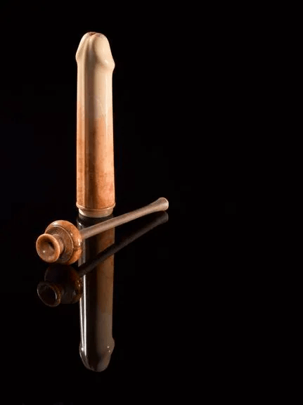 Parmi ces «autres objets de luxe» se trouvent, sans surprise, les godemichés. La Wellcome Collection de Londres en conserve un qui provient de France et qui date du XVIIIe siècle. Je parierais qu’il a été utilisé par une aristocrate aux cheveux intensément poudrés. Fait notable, il est muni d’un piston qui permettait au bon moment de stimuler une éjaculation avec du lait tiède, ce qui me fait bien rigoler parce que franchement, qui a envie de se retrouver avec du lait non-pasteurisé du XVIIIe siècle dans la snatch?