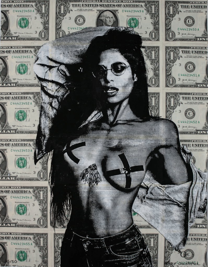Christopher Henry, Erotic Dollart (2020), sérigraphie sur billets de 1$ américains.