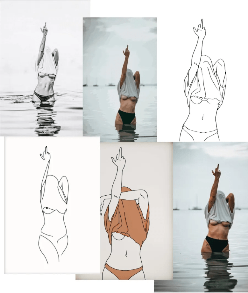 L’image a été plusieurs fois réinterprétée, mais toujours sans mention du nom de l’artiste et du modèle. Ça me rend un peu dingue de ne pas le savoir, alors si vous avez des indices, je les prends volontiers.