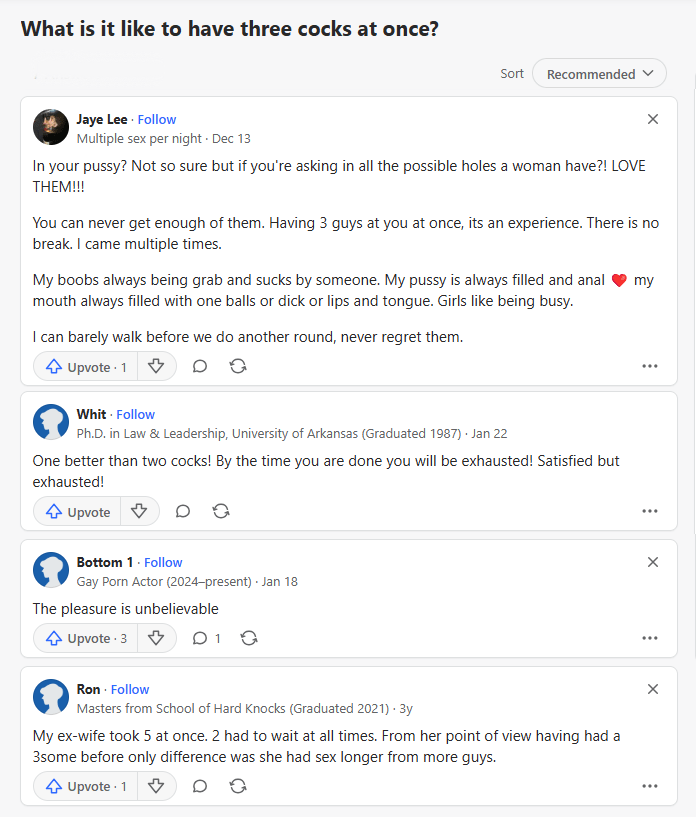 Il est temps de vous faire partager encore une fois mon amour des forums de discussion louches. La question du jour: qu’est-ce que ça fait d’avoir trois queues en même temps?